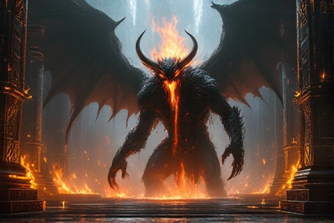 enormous size, its dark form surrounded by crackling flames and impenetrable